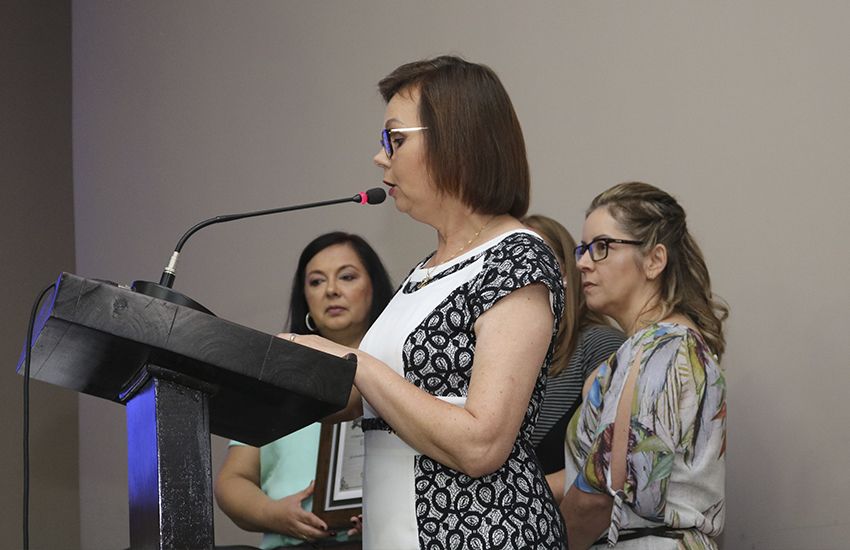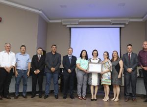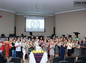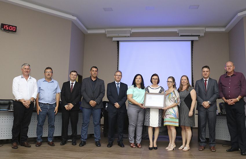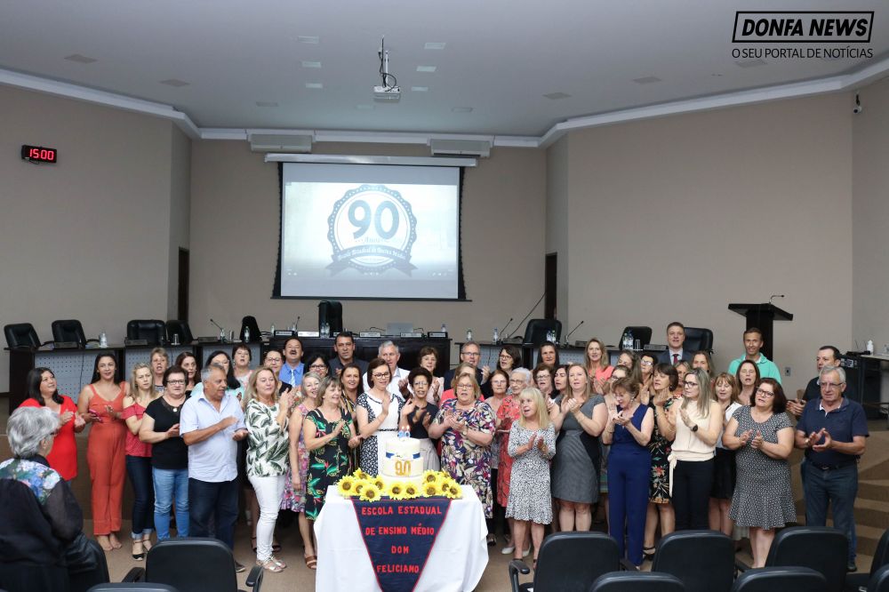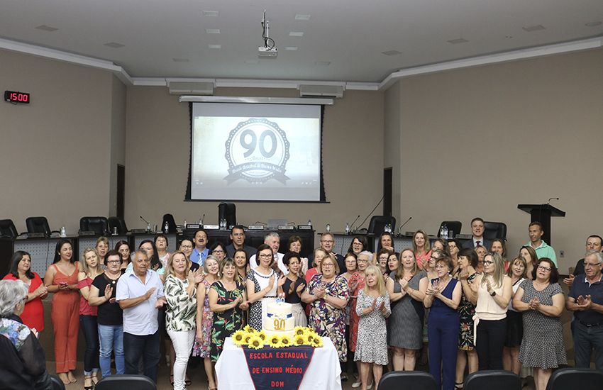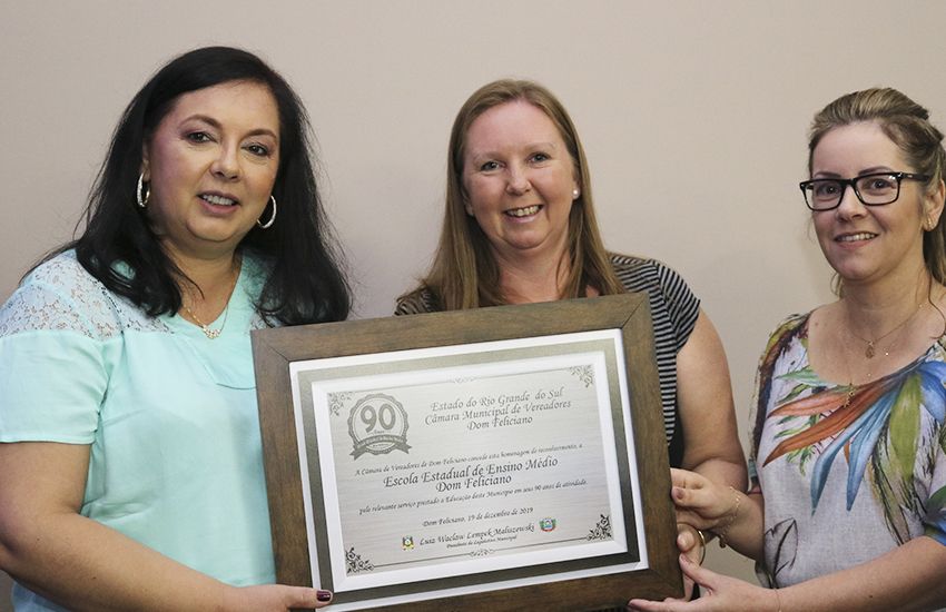 Câmara homenageia Escola Estadual pelo 90º aniversário A Diretora, Lisane Bekenkamp acompanhada da equipe diretiva, recebeu a homenagem para Escola. 19/12/2019 - 10h13min